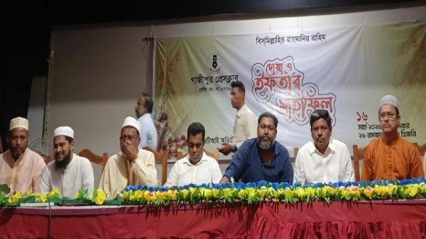 ঈদযাত্রীদের স্বস্তিতে গাজীপুরে চৌরাস্তা বাইপাসে অভিযান, জরিমানা ৩৩ হাজার টাকা কাপাসিয়া প্রেসক্লাবের উদ্যোগে দোয়া ও ইফতার মাহফিল অনুষ্ঠিত গাজীপুর সিটি কর্পোরেশনের প্রশাসক ও গাজীপুর মহানগর বিএনপির সভাপতি আলহাজ্ব মোঃ শওকত হোসেন সরকারের পক্ষ থেকে ঈদ উপহার সামগ্রী বিতরণ গাজীপুর সিটি’র প্রশাসক ও মহানগর বিএনপির সভাপতি শওকত হোসেন সরকারের পক্ষ থেকে ঈদ সামগ্রী বিতরণ করেন ৪নং ওয়ার্ড বিএনপির সাধারণ সম্পাদক ও কাউন্সিলর পদ-প্রার্থী আব্দুর রাজ্জাক (রাজু) গাজীপুর প্রেসক্লাবের আয়োজনে দোয়া ও ইফতার গাজীপুরে জামায়াতে ইসলামী ইঞ্জিনিয়ার্স বিভাগের উদ্যোগে অসচ্ছল পরিবারের মাঝে ঈদ উপহার বিতরণ পবিত্র ঈদ-উল-ফিতর উপলক্ষে দেশবাসীকে রানা রায়হানের ঈদের শুভেচ্ছা গাজীপুরে কৃষিজমি থেকে মাটি কাটায় একজনকে এক মাসের কারাদণ্ড দোলনা থেকে কবর পর্যন্ত পুলিশের প্রয়োজন- আইজিপি ওয়েলফেয়ার অফিসার পদে নিয়োগ দিচ্ছে “আঞ্জুমান গ্রুপ”