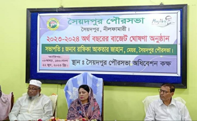 নীলফামারীর সৈয়দপুর পৌরসভার ২০২৩- ২০২৪ অর্থবছরের জন্য ১৫৯ কোটি ৭৫ লাখ ৪৫ হাজার ৫৯৮ টাকার বাজেট ঘোষণা করা হয়েছে। বৃহস্পতিবার (২২ জুন) বিকেল ৪টায় পৌরসভার সম্মেলন কক্ষে এক অনুষ্ঠানে ওই বাজেট ঘোষনা করা হয়। প্রথম শ্রেণির সৈয়দপুর পৌরসভার মেয়র রাফিকা আকতার জাহান বাজেট ঘোষণা অনুষ্ঠানে সভাপতিত্ব ও বাজেট উপস্থাপন করেন।