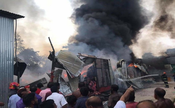 গাজীপুর মহানগরীর পূবাইল মেট্রোপলিটন থানার ৪০ নং ওয়ার্ডের মাঝুখান পূর্ব পাড়ায় তুলার গোডাউন পল্লীতে ভয়াবহ অগ্নিকাণ্ডের ঘটনা ঘটেছে।