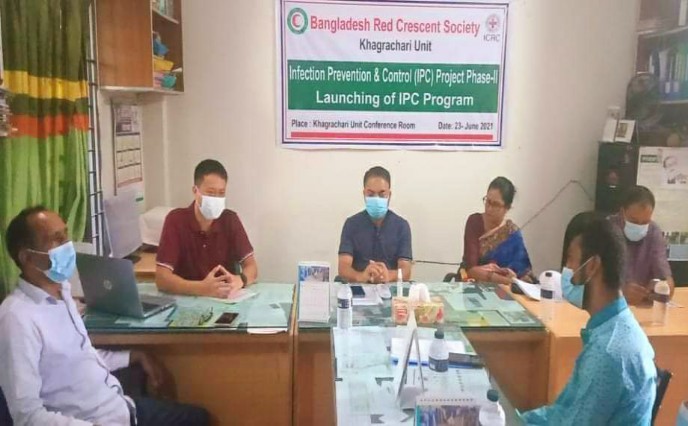 খাগড়াছড়ি জেলার ১১টি সরকারি হাসপাতাল ও স্বাস্থ্য কেন্দ্রে করোনা ভাইরাসের প্রাদুর্ভাব রোধে আন্তর্জাতিক রেড ক্রসের সহায়তায় দ্বিতীয় পর্যায়ে সংক্রমণ প্রতিরোধ ও নিয়ন্ত্রণ (আইপিসি) কার্যক্রম শুরু করছে বাংলাদেশ রেড ক্রিসেন্ট সোসাইটি।
