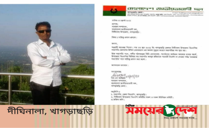 খাগড়াছড়ি জেলা বিএনপির সাধারণ সম্পাদক এম এন আবছার স্বাক্ষরিত এক প্রেস বিবৃতিতে এ দ্বায়িত্ব প্রদান করা হয়।