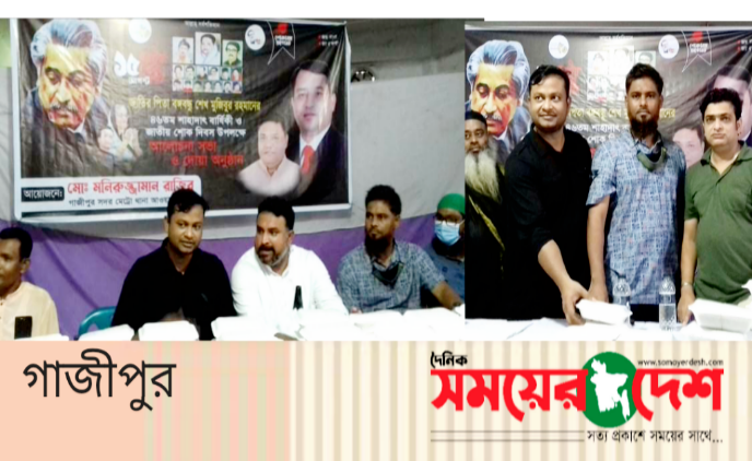 ১৫ ই আগস্ট জাতীয় শোক দিবসে সর্বকালের সর্বশ্রেষ্ঠ বাঙ্গালী স্বাধীনতার মহান স্থপতি জাতির পিতা বঙ্গবন্ধু শেখ মুজিবুর রহমানের ৪৬তম শাহাদত বার্ষিকীতে বিনম্র শ্রদ্ধা নিবেদন করেছেন গাজীপুর মহানগর মেট্টো সদর থানার আওয়ামী লীগ পক্ষ থেকে আলোচনা সভা ও দোয়া র আয়োজন করেন। মনিরুজ্জামান রাজিব।