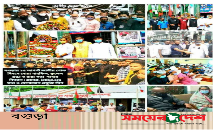 শ্রদ্ধাভরে বঙ্গবন্ধু পরিবারের জন্য দোয়া এবং মাননীয় প্রধানমন্ত্রী দেশমাতা শেখ হাসিনা ও তাহার স্নেহময় সুপুত্রের দীর্ঘায়ু কামনায় দোয়া মাহফিল, খাদ্য বিতরণ, ফুল দিয়ে শ্রদ্ধা নিবেদন করেন বগুড়া জেলা আওয়ামী লীগের সভাপতি আলহাজ্ব মজিবর রহমান, সাধারণ সম্পাদক রাগেবুল আহসান রিপু, যুগ্ন সাধারণ সম্পাদক মুন্জুরুল আলম মোহন, যুগ্ন সাধারণ সম্পাদক দুদু সহ আওয়ামী লীগের অন্যান্য নেতাকর্মী। জেলা যুবলীগের সভাপতি শুভাশিস পোদ্দার লিটন সহ প্রমুখ নেতাকর্মী উপস্থিত ছিলেন। ছাত্রলীগের সভাপতি , সাধারণ সম্পাদক অসীম কুমার রায়, যুগ্ন সাধারণ সম্পাদক প্রনয় কুমার দত্ত সহ প্রমুখ। এছাড়া স্বেচ্ছাসেবক লীগ, শ্রমিকলীগ, কৃষক লীগ সহ অন্যান্য সহয়োগি সংগঠনের নেতাকর্মী উপস্হিত ছিলেন। বগুড়া জেলা, সদর, সোনাতলা সারিয়াকান্দি সহ অন্যান্য উপজেলায় দোয়া কামনা করেন আওয়ামী লীগ ও সহয়োগি সংগঠন গুলো।