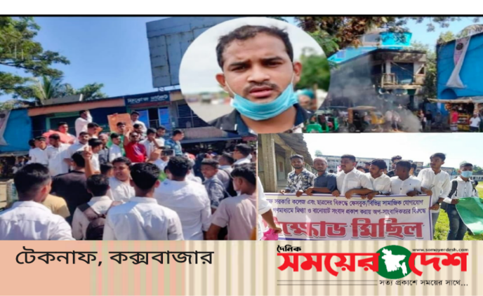 শনিবার (১৩ নভেম্বর) দুপুরে শত শত শিক্ষার্থী আরাফাত সানির বিরুদ্ধে বিভিন্ন লিখা সম্বলিত প্লেকার্ড ও ব্যনার নিয়ে টেকনাফ শহরের প্রধান সড়ক প্রদক্ষিন শেষে আগুন জ্বালিয়ে সড়ক অবরোধ করে বিক্ষোভ জানায়। পরে তারা উপজেলার নির্বাহী কর্মকর্তা বরাবরে স্বারক লিপি প্রদানের কথা রয়েছে বলে জানা গেছে।