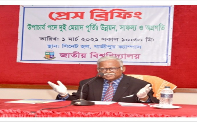 সোমবার (০১ মার্চ) দুপুরে জাতীয় বিশ্ববিদ্যালয়ের সিনেট হলে উপাচার্য হিসেবে দুই মেয়াদ পূর্তি উপলক্ষ্যে এক প্রেসব্রিফিংএ তিনি এসব কথা বলেন। তিনি গত ৮ বছরে বিশ^বিদ্যালয়ের বিভিন্ন উন্নয়ন কর্মকা-, সাফল্য ও অগ্রগতি সাংবাদিকদের সামনে সবিস্তার তুলে ধরেন।