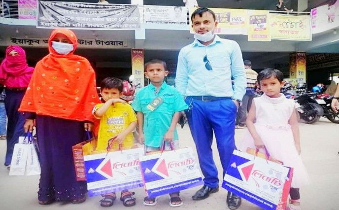 গাজীপুরের শ্রীপুরে তেলিহাটি ইউনিয়নের ডোমবাড়িচালা গ্রামে এনজিওর কিস্তির টাকা পরিশোধের চাপে বিষপাণে আত্মহননকারী রুবেল মিয়ার তিন ছেলে-মেয়েকে ঈদের নতুন জামাকাপড় ও ঈদ সামগ্রী কিনে দিলেন পুস্পদাম রির্সোটের ব্যবস্থাপনা পরিচালক ব্যবসায়ী সাদ্দাম হোসেন (অনন্ত)।
